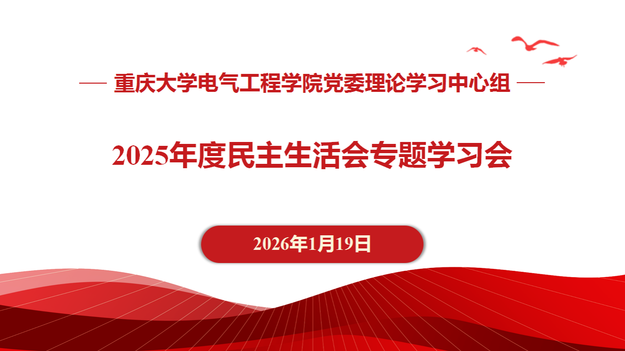 2026年1月19日上午,电气工程学院党委理论学习中心组召开2025年度民主生活会专题学习会,深入学习贯彻习近平新时代中国特色社会主义思想,深入学习《中国共产党章程》、习近平总书记关于党的建设的重要思想、关于党的自我革命的重要思想,重点学习习近平总书记在二十届中央政治局民主生活会上和二十届中央政治局第二十一次集体学习时的重要讲话精神、习近平同志《论教育》等