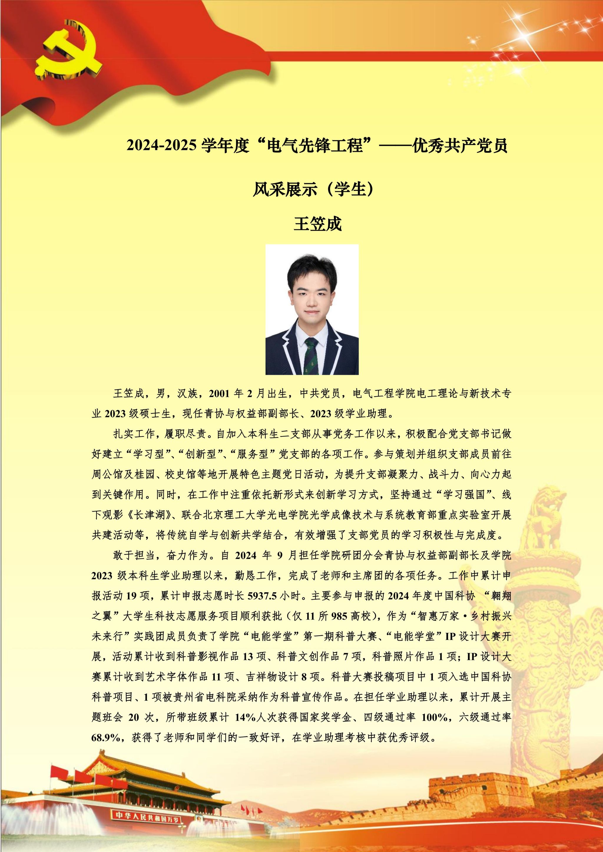 【党员风采】本科生二支部王笠成