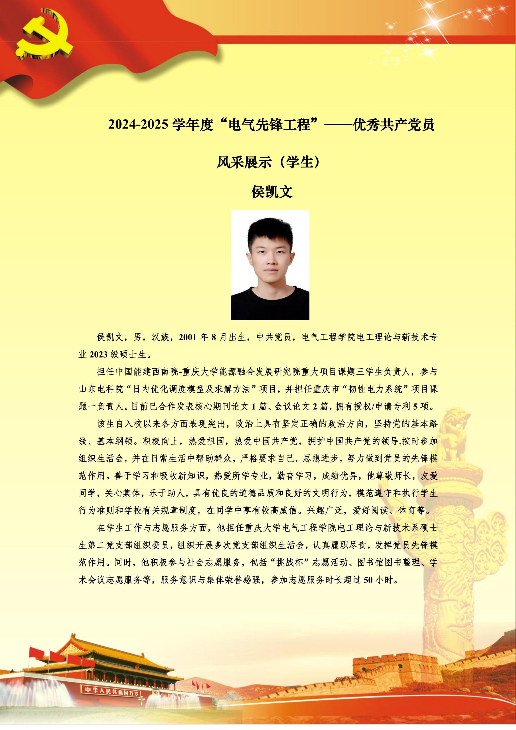 【党员风采】电工理论与新技术硕士生二支部侯凯文