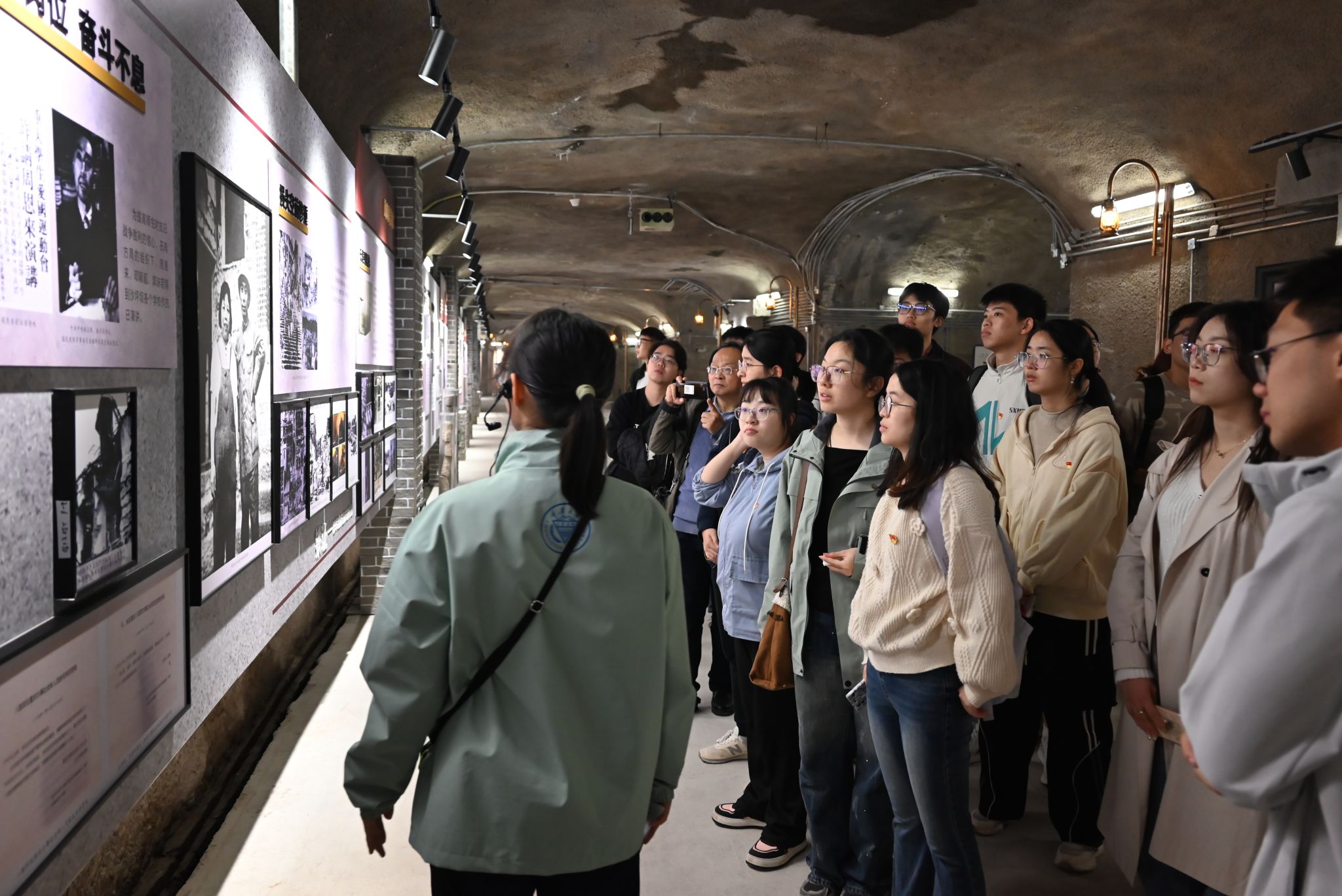 全体党员还前往A校园防空洞参观学习。在讲解员的引导下,大家回顾了抗战时期学校的办学历程与红色记忆,认真聆听、驻足凝视,深切感受到老一辈教育工作者在艰难岁月中坚守使命、为国育才的崇高精神。