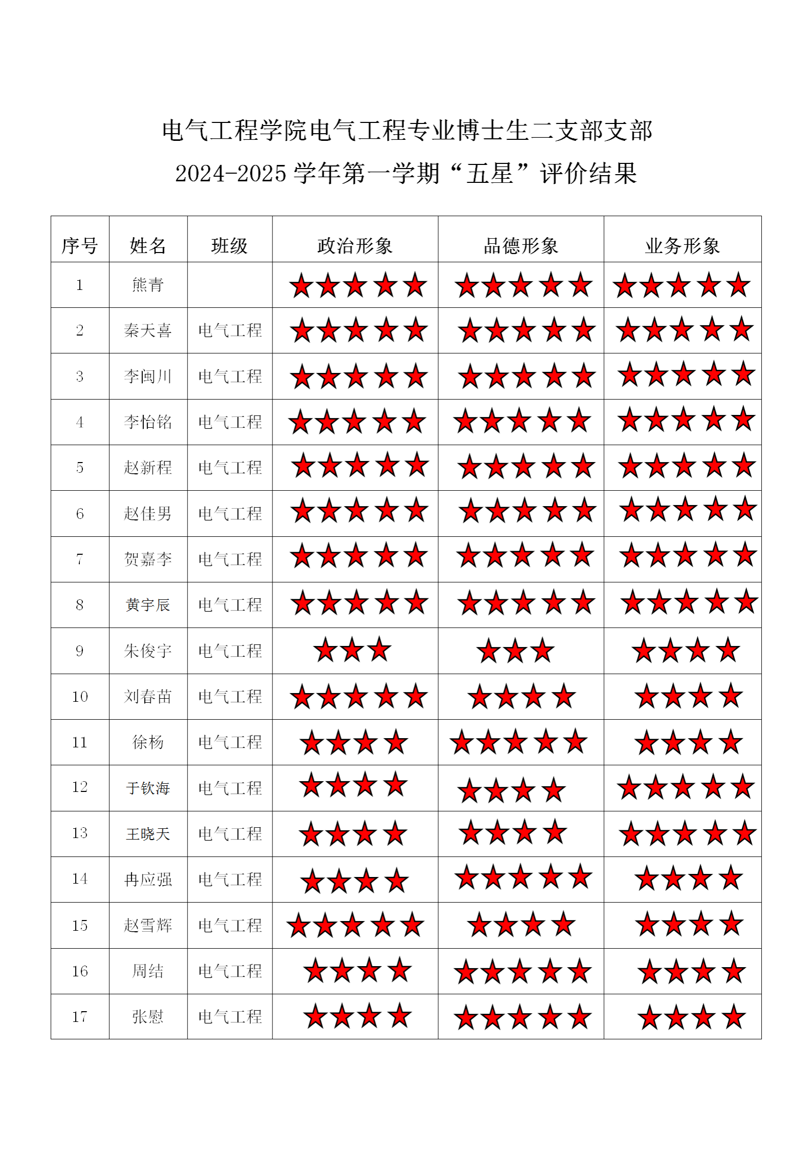 电气工程学院博士二支部 2024-2025学年第二学期“五星”评价结果