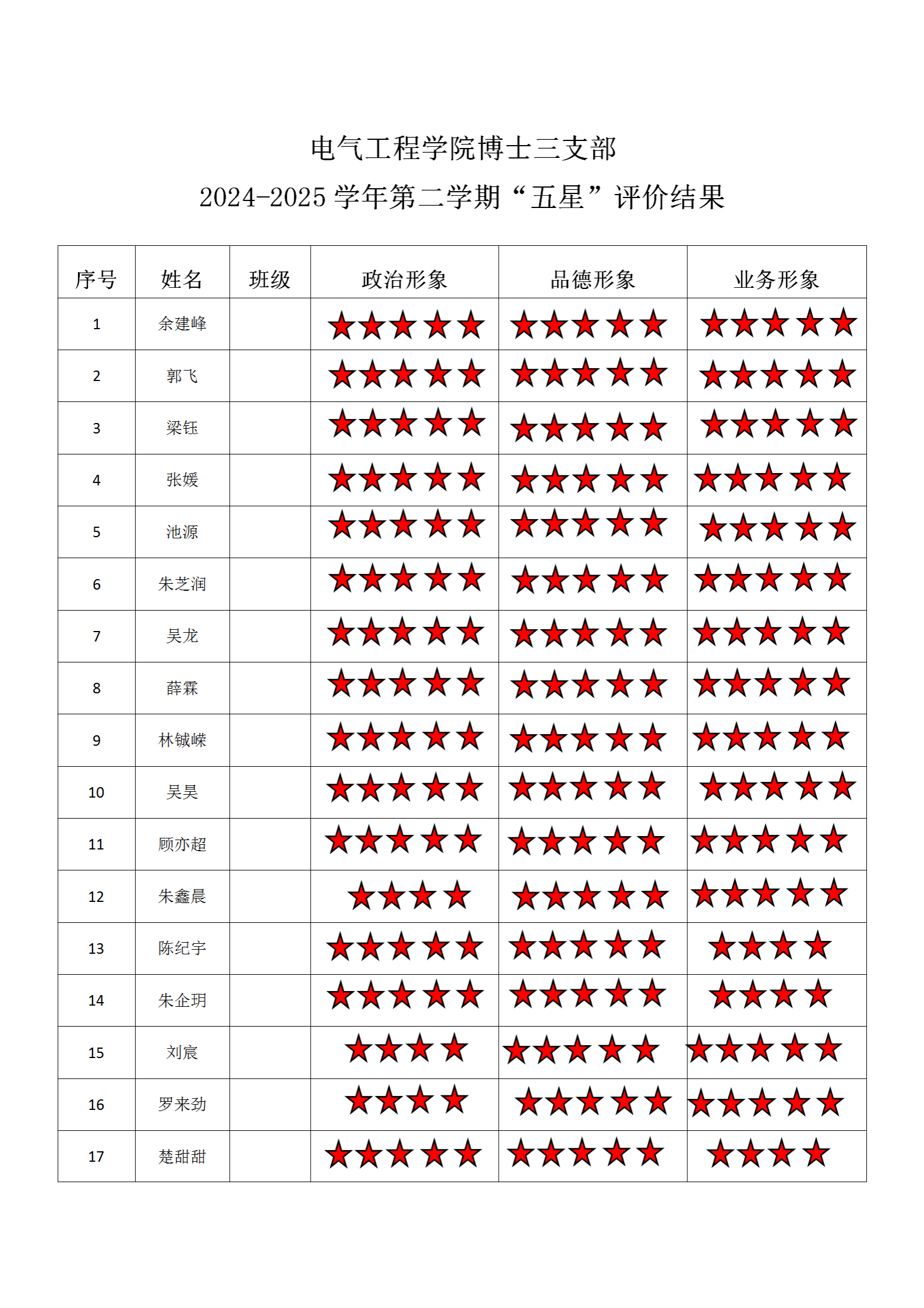 电气工程学院博士三支部 2024-2025学年第二学期“五星”评价结果