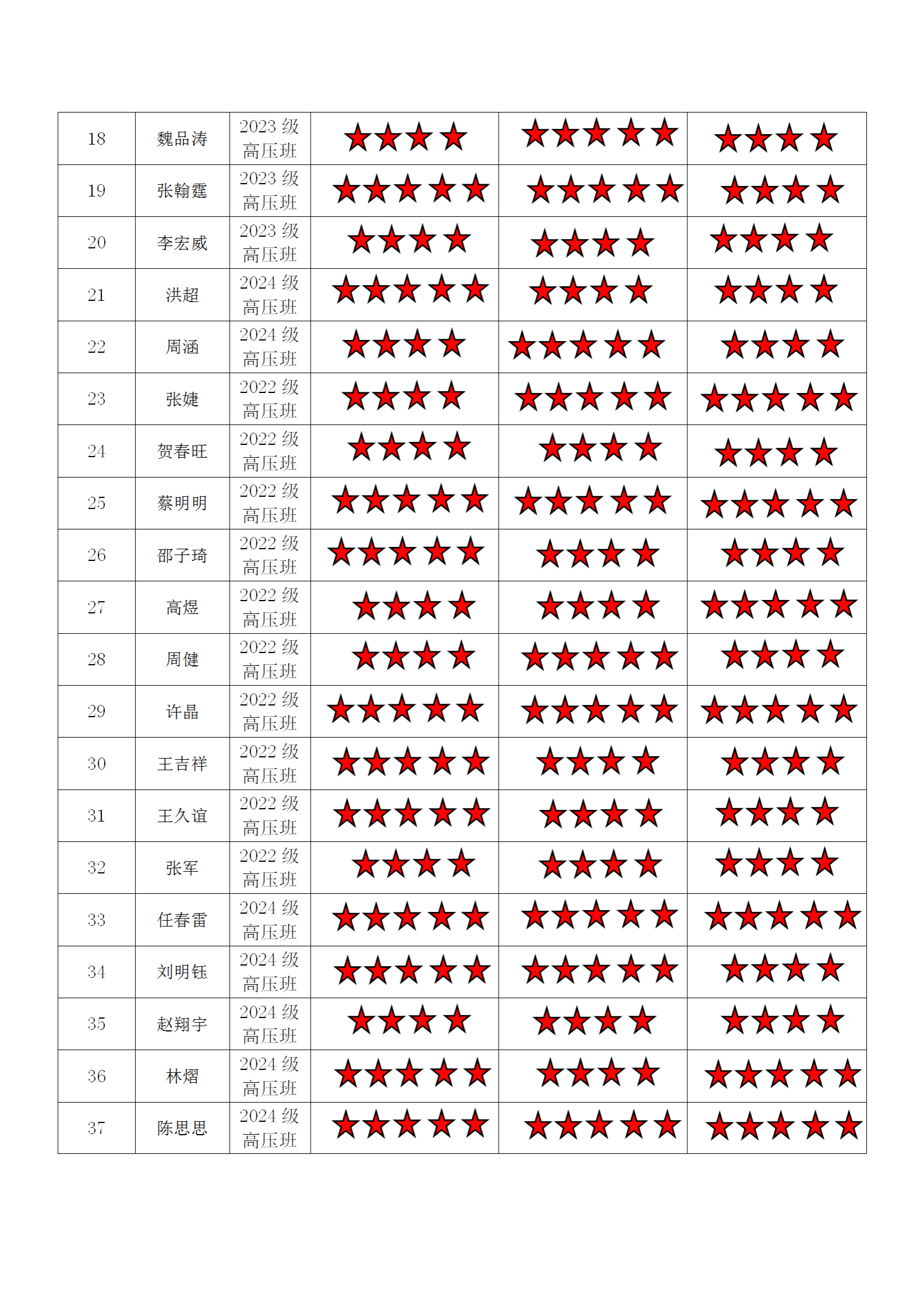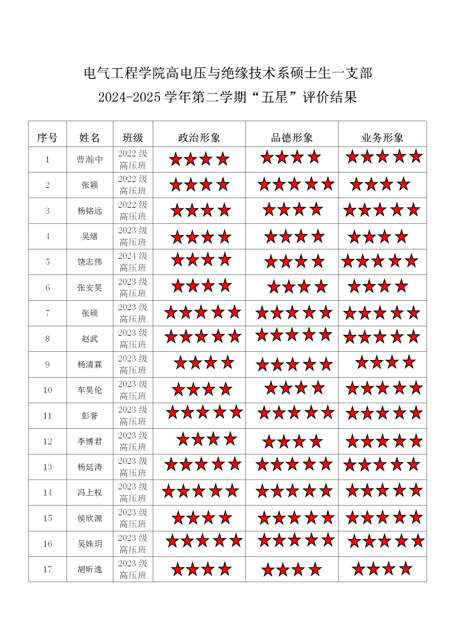 电气工程学院高压二支部 2024-2025学年第二学期“五星”评价结果