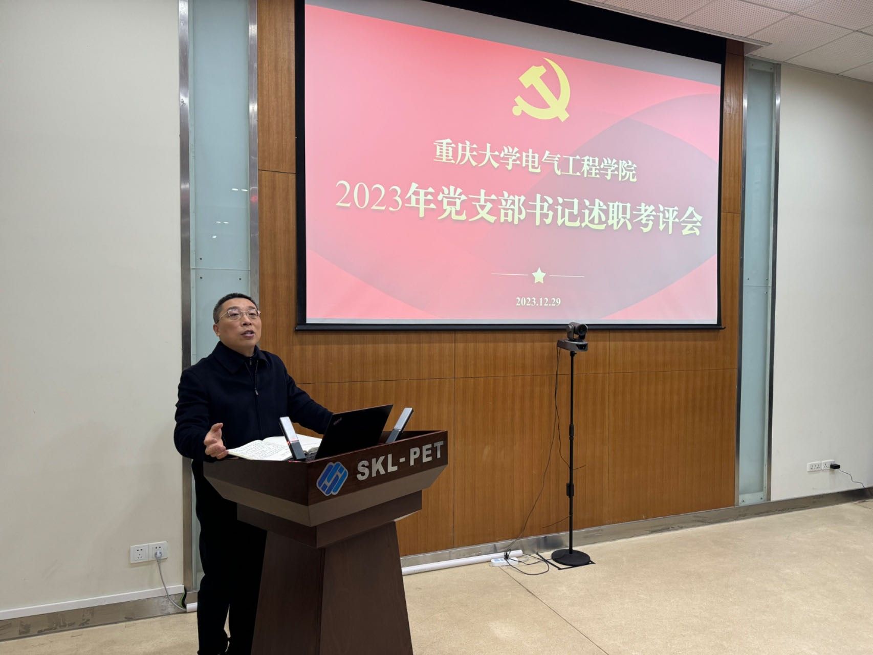 2023年12月29日,电气工程学院开展2023年学院党支部书记抓党建述职评议会。学院党委书记胡建林,党委副书记、纪委书记王晓静,党委副书记吴嘉,党委委员王明渝及院内31个党支部书记参会。会议由胡建林主持。