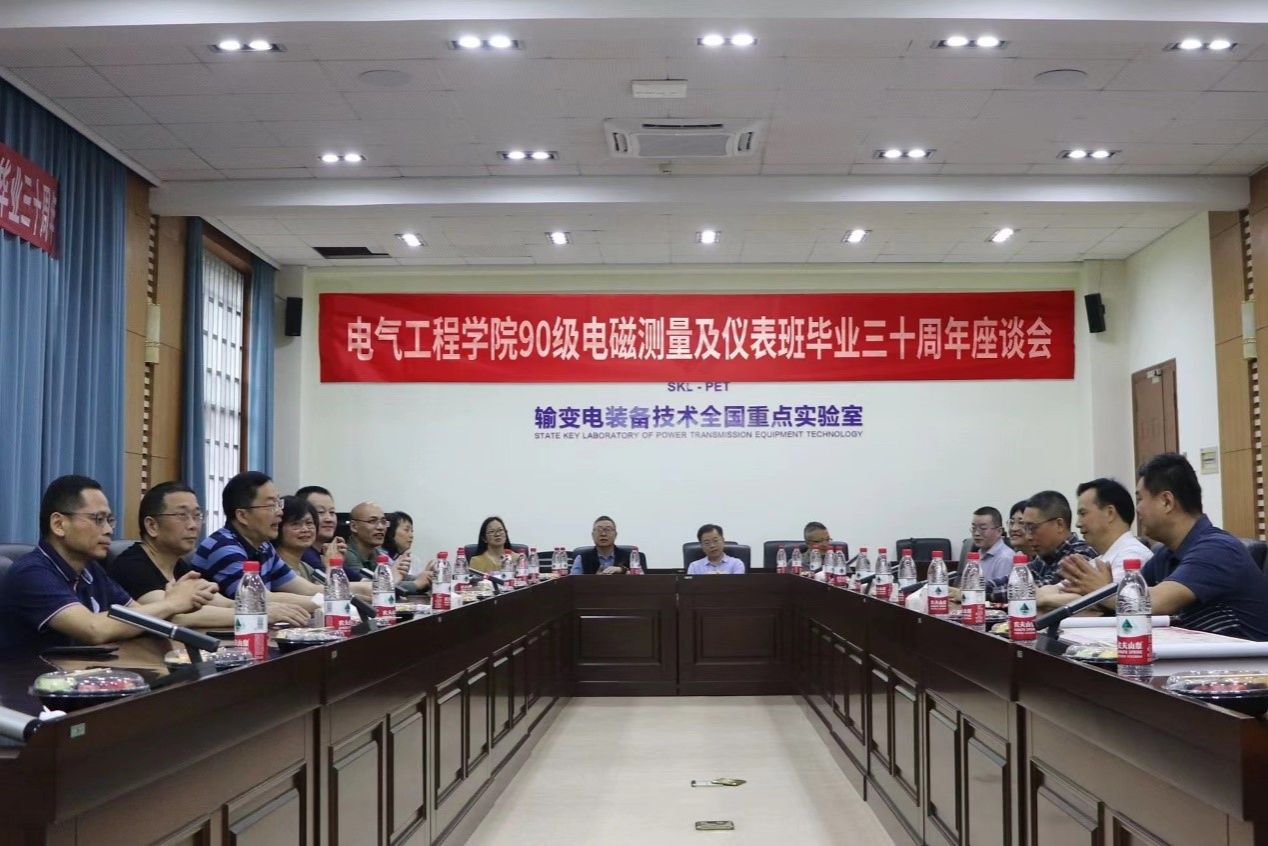 2024年4月20日上午,重庆大学90级电磁测量及仪表班校友返校座谈会于重庆大学A区六教119会议室举行。本次座谈会共有20余位校友参会,90级电磁测量及仪表班辅导员、就业中心主任张红春,90级电磁测量及仪表班辅导员、体育学院党委书记明兴建,电气工程学院党委书记胡建林和党委副书记吴嘉出席本次座谈会。