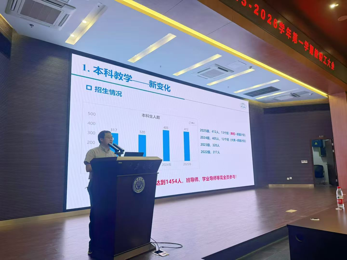 副院长杜雄、杨鸣、王强钢分别从国家自然科学基金2025年情况和2026年申报动员、研究生中期考核和综合考试工作、本科教学管理、学术会议申办规定、实验室安全等方面进行了简要情况通报及相关工作布置。