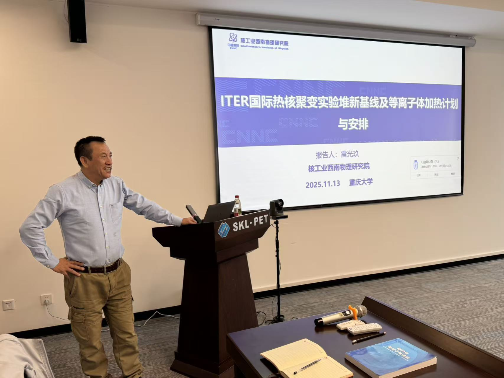 为促进学术交流、追踪国际核聚变能源研究前沿动态,2025年11月13日,重庆大学苌磊课题组邀请核工业西南物理研究院严龙文研究员和雷光玖研究员来院作专题学术报告。本次报告在重庆大学虎溪校区工科实验大楼C栋732会议室举行,吸引了来自电气工程学院和核能技术创新研究院等众多师生参加。会议由苌磊主持。