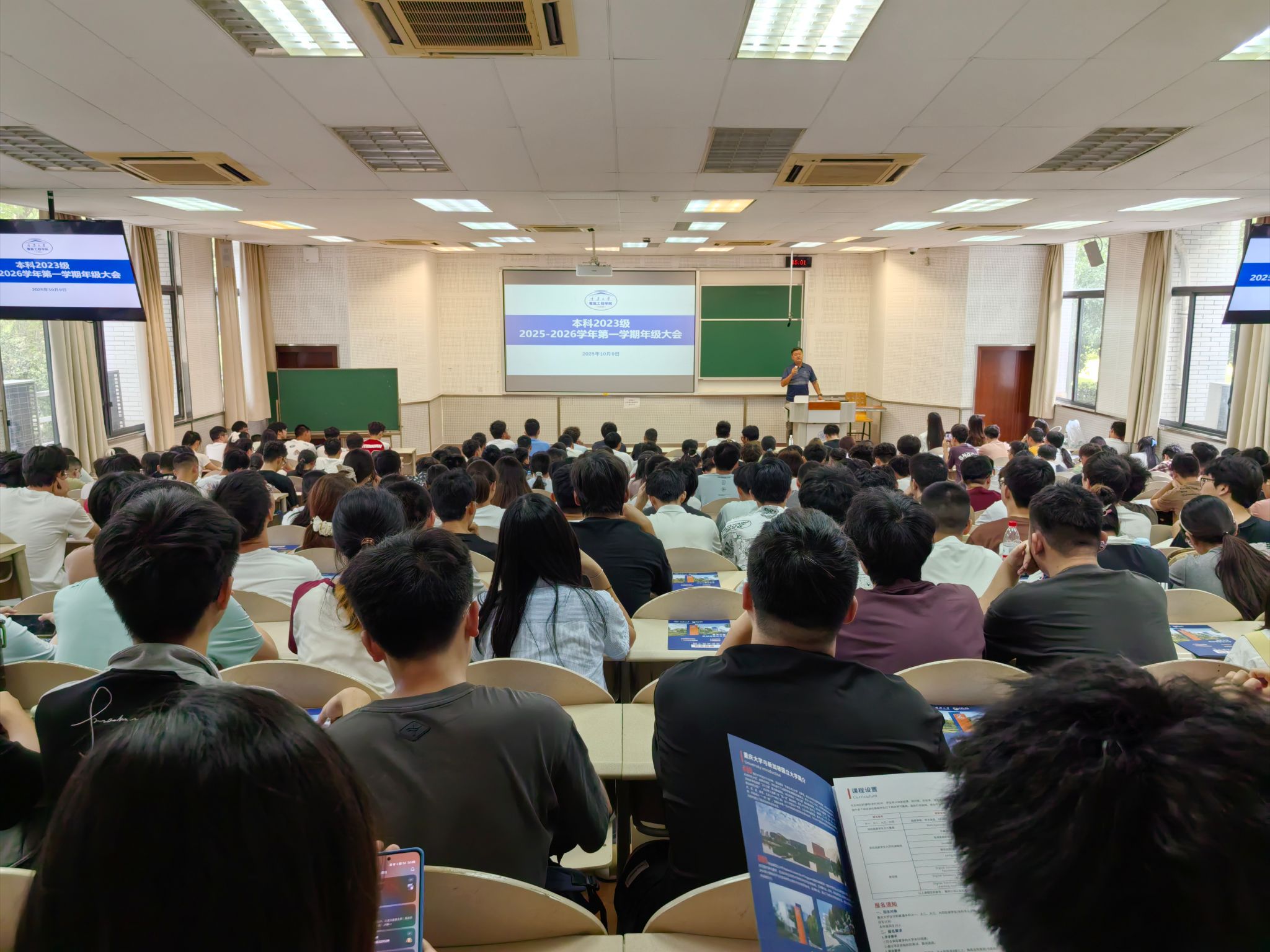 2025年10月9日下午,重庆大学电气工程学院本科2023级新学期年级大会在虎溪校区D1137教室举行。电气工程学院党委副书记吴嘉、2023级辅导员胡力方、2023级兼职辅导员以及2023级全体本科生参加本次年级大会,会议由胡力方主持。